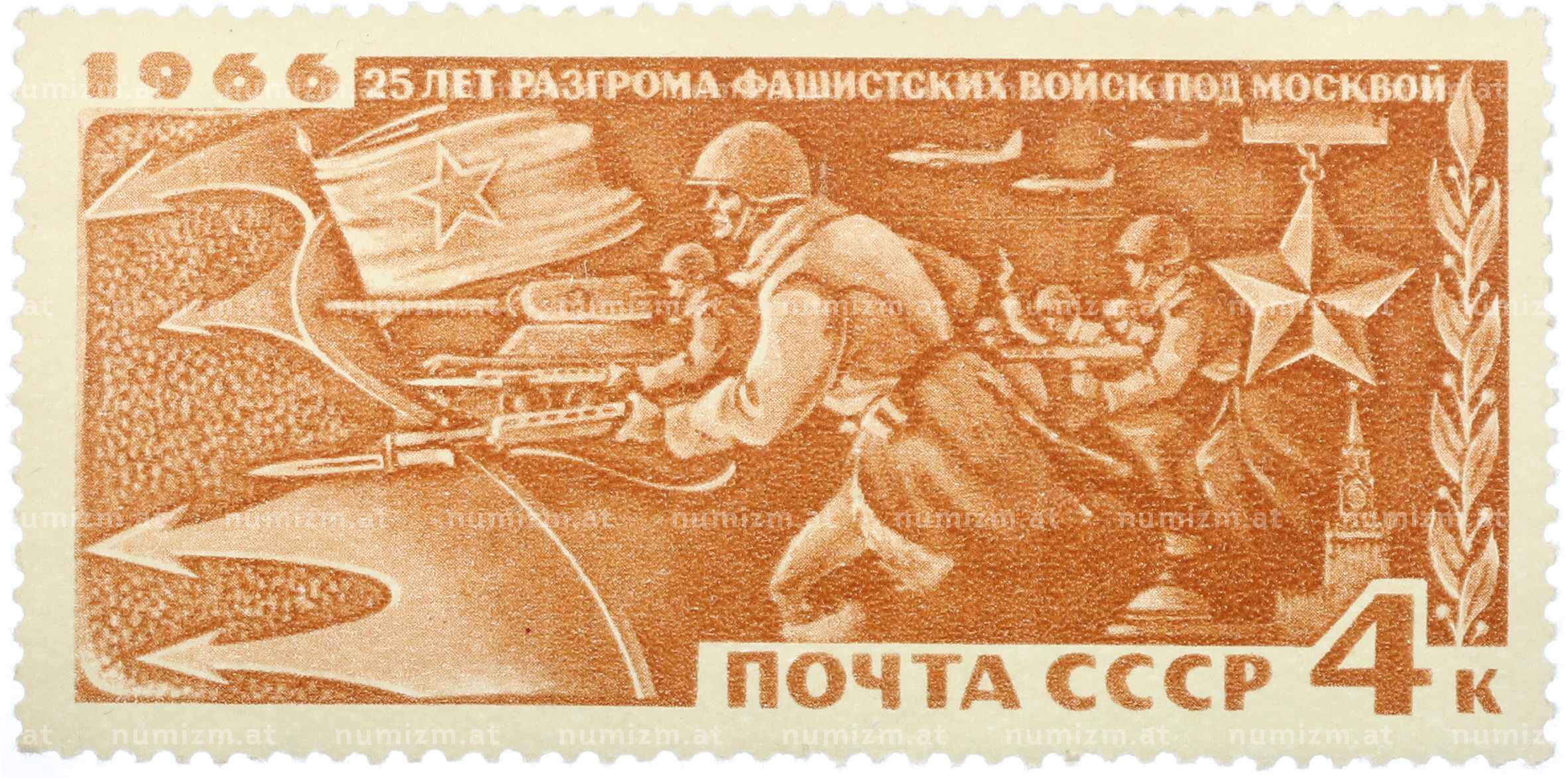 Купить Почтовая марка 4 копейки 1966 года «25 лет разгрому немецко-фашистских войск под Москвой» по привлекательной цене можно в нашем интернет-магазине — Вам достаточно оформить заказ на сайте. Все монеты, представленные в каталоге, находятся в наличии на нашем складе.