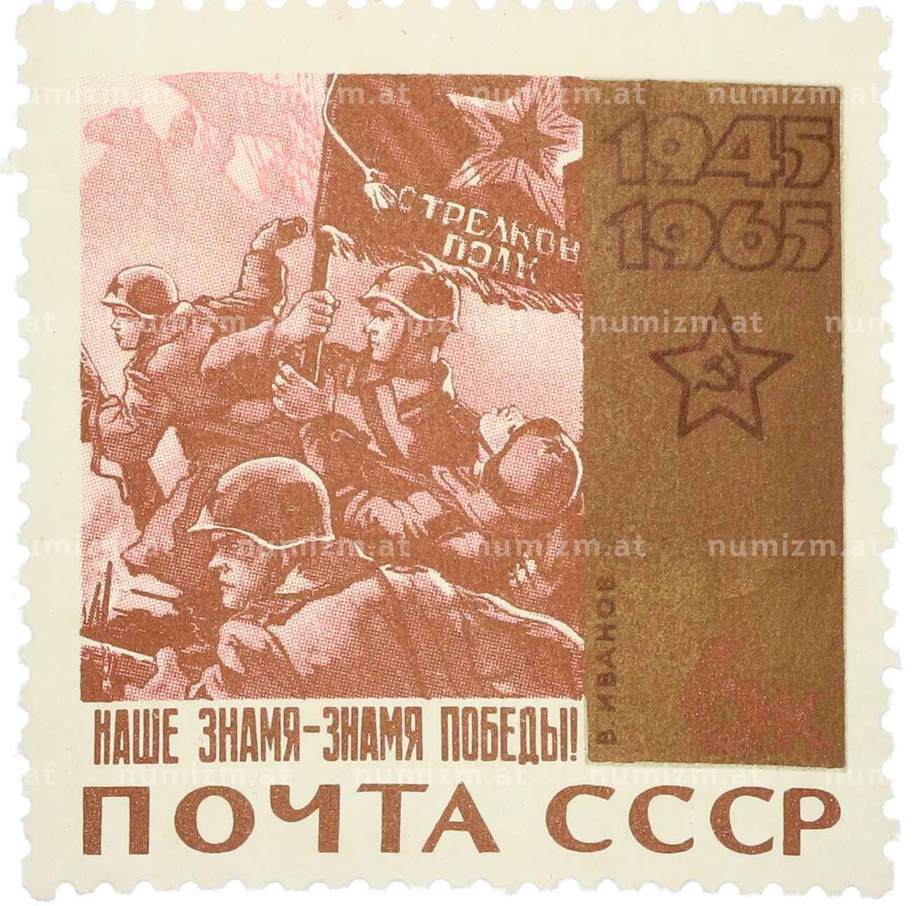 20.01.2025Интернет магазин «Нумизмат» предлагает приобрести Почтовая марка 6 копеек 1965 года «Наше знамя — знамя Победы!».
