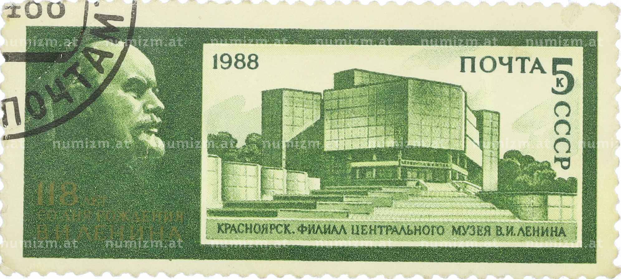 Купить Почтовая марка 5 копеек 1988 года «118 лет со дня рождения Ленина — филиал ЦМЛ в Красноярске» по привлекательной цене можно в нашем интернет-магазине — Вам достаточно оформить заказ на сайте. Все монеты, представленные в каталоге, находятся в наличии на нашем складе.