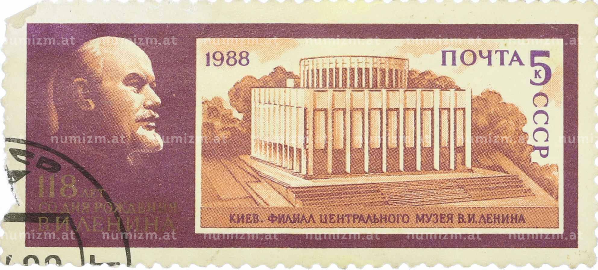 Купить Почтовая марка 5 копеек 1988 года «118 лет со дня рождения Ленина — филиал ЦМЛ в Киеве» по привлекательной цене можно в нашем интернет-магазине — Вам достаточно оформить заказ на сайте. Все монеты, представленные в каталоге, находятся в наличии на нашем складе.