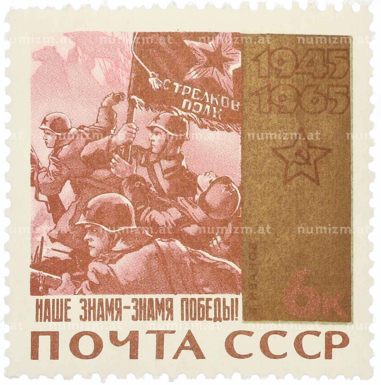 Купить Почтовая марка 6 копеек 1965 года «20 лет Победы — Наше знамя — знамя Победы» по привлекательной цене можно в нашем интернет-магазине — Вам достаточно оформить заказ на сайте. Все монеты, представленные в каталоге, находятся в наличии на нашем складе.
