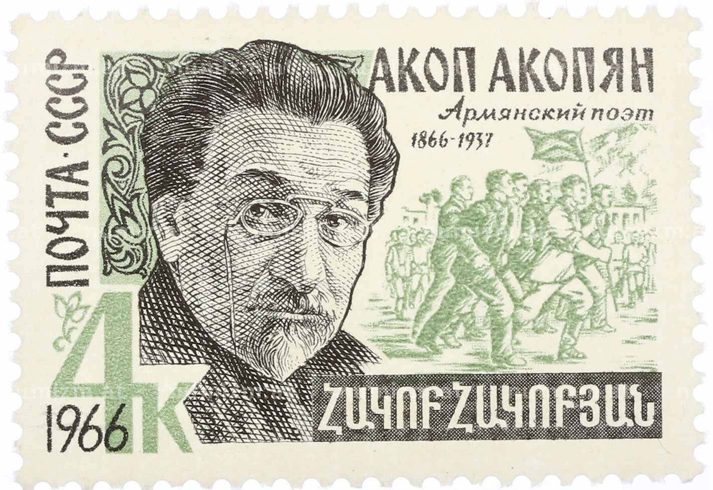Купить Почтовая марка 4 копейки 1966 года «100 лет со дня рождения Акопа Акопяна» по привлекательной цене можно в нашем интернет-магазине — Вам достаточно оформить заказ на сайте. Все монеты, представленные в каталоге, находятся в наличии на нашем складе.