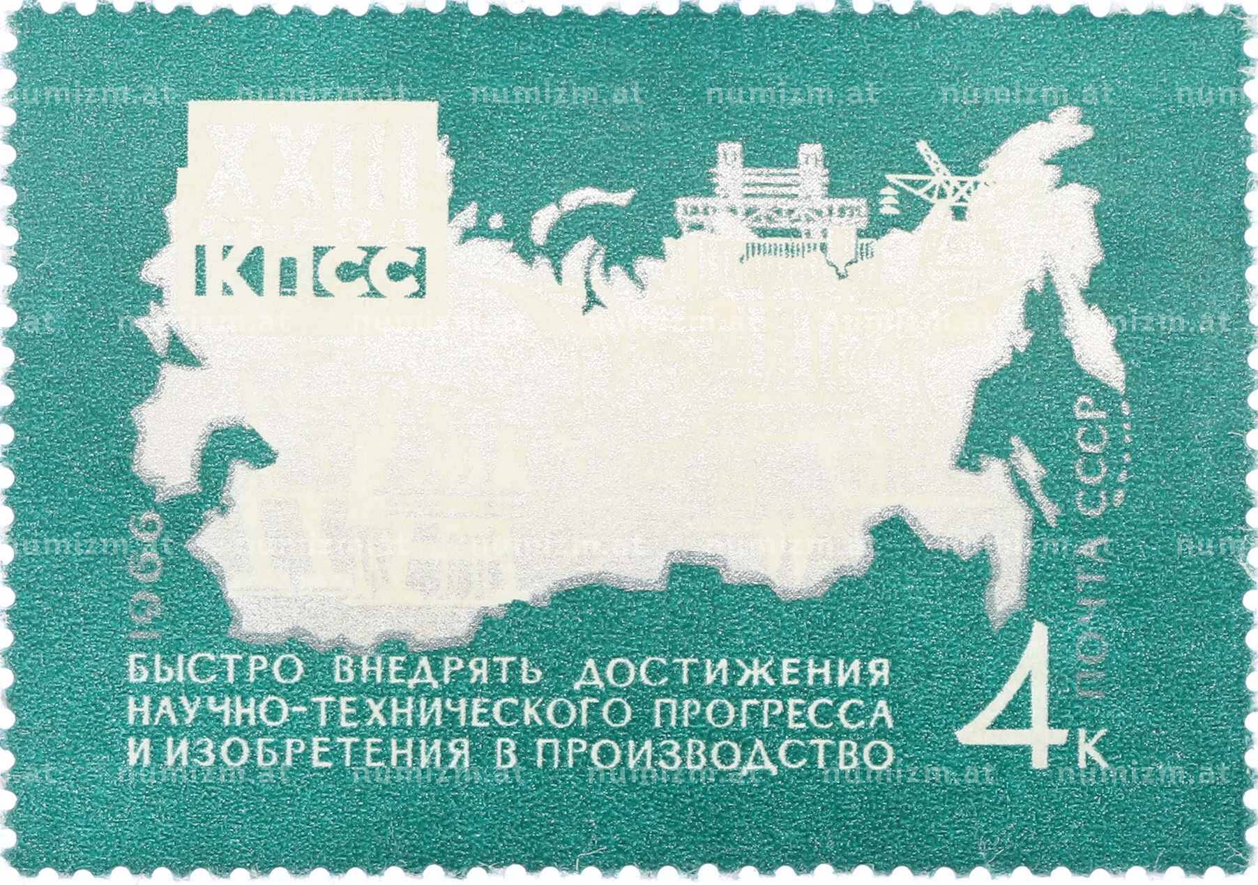 Почтовая марка 4 копейки 1966 года «Решения XXIII съезда КПСС — Производство» (Артикул: P1-0832): подробные характеристики, качественные фотографии в высоком разрешении, низкая цена.