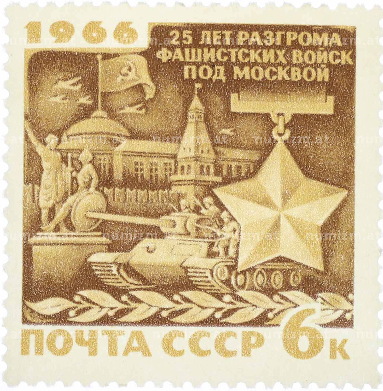 Купить Почтовая марка 6 копеек 1966 года «25 лет разгрому немецко-фашистских войск под Москвой» по привлекательной цене можно в нашем интернет-магазине — Вам достаточно оформить заказ на сайте. Все монеты, представленные в каталоге, находятся в наличии на нашем складе.