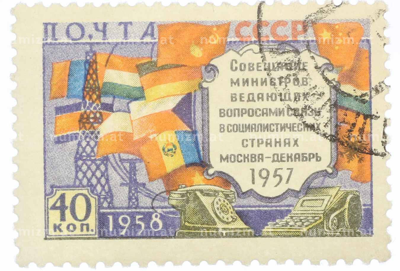 Купить Почтовая марка 40 копеек 1958 года «Совещание министров связи социалистических стран в Москве» по привлекательной цене можно в нашем интернет-магазине — Вам достаточно оформить заказ на сайте. Все монеты, представленные в каталоге, находятся в наличии на нашем складе.