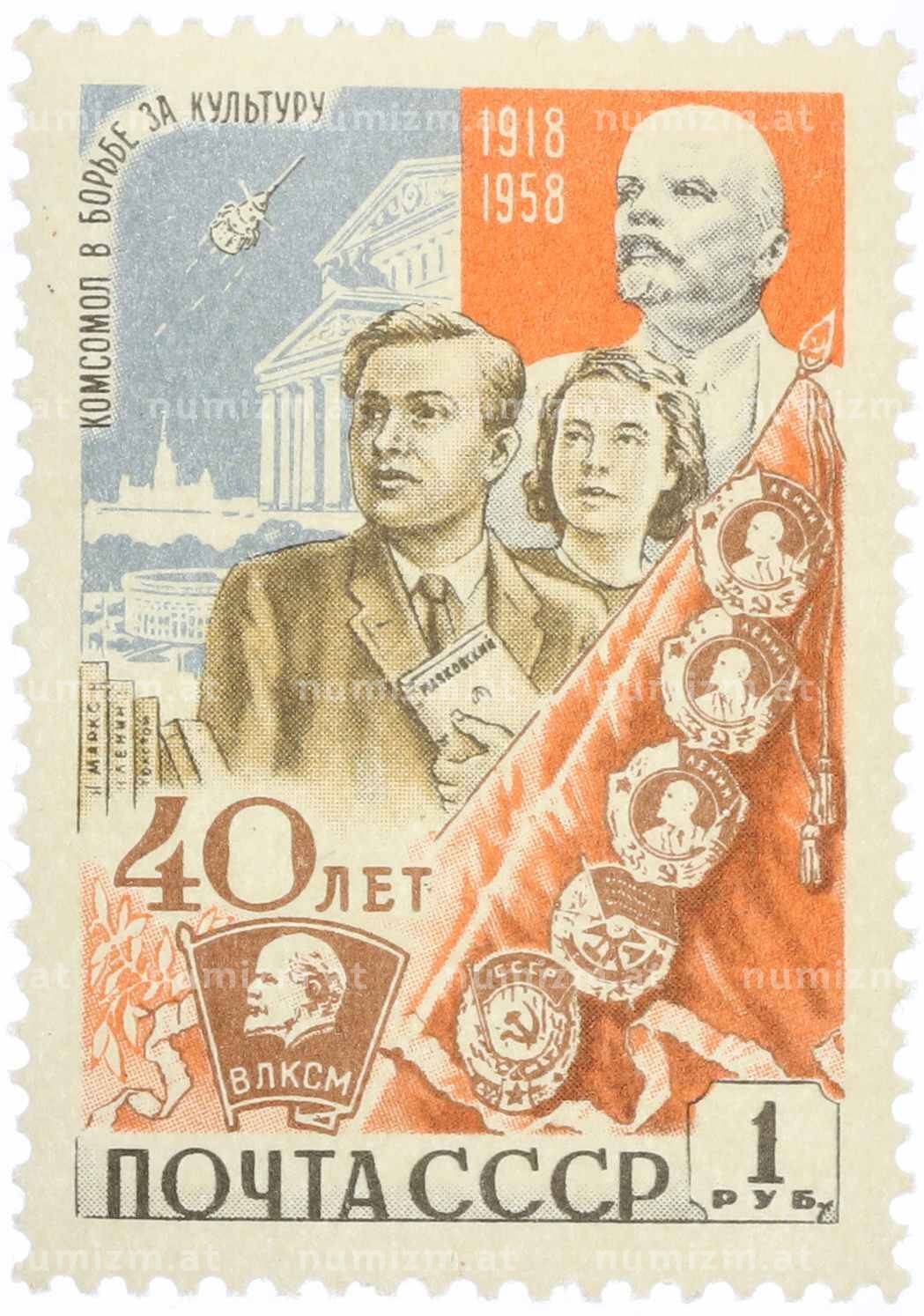 Купить Почтовая марка 1 рубль 1958 года «40 лет ВЛКСМ — Культура» по привлекательной цене можно в нашем интернет-магазине — Вам достаточно оформить заказ на сайте. Все монеты, представленные в каталоге, находятся в наличии на нашем складе.