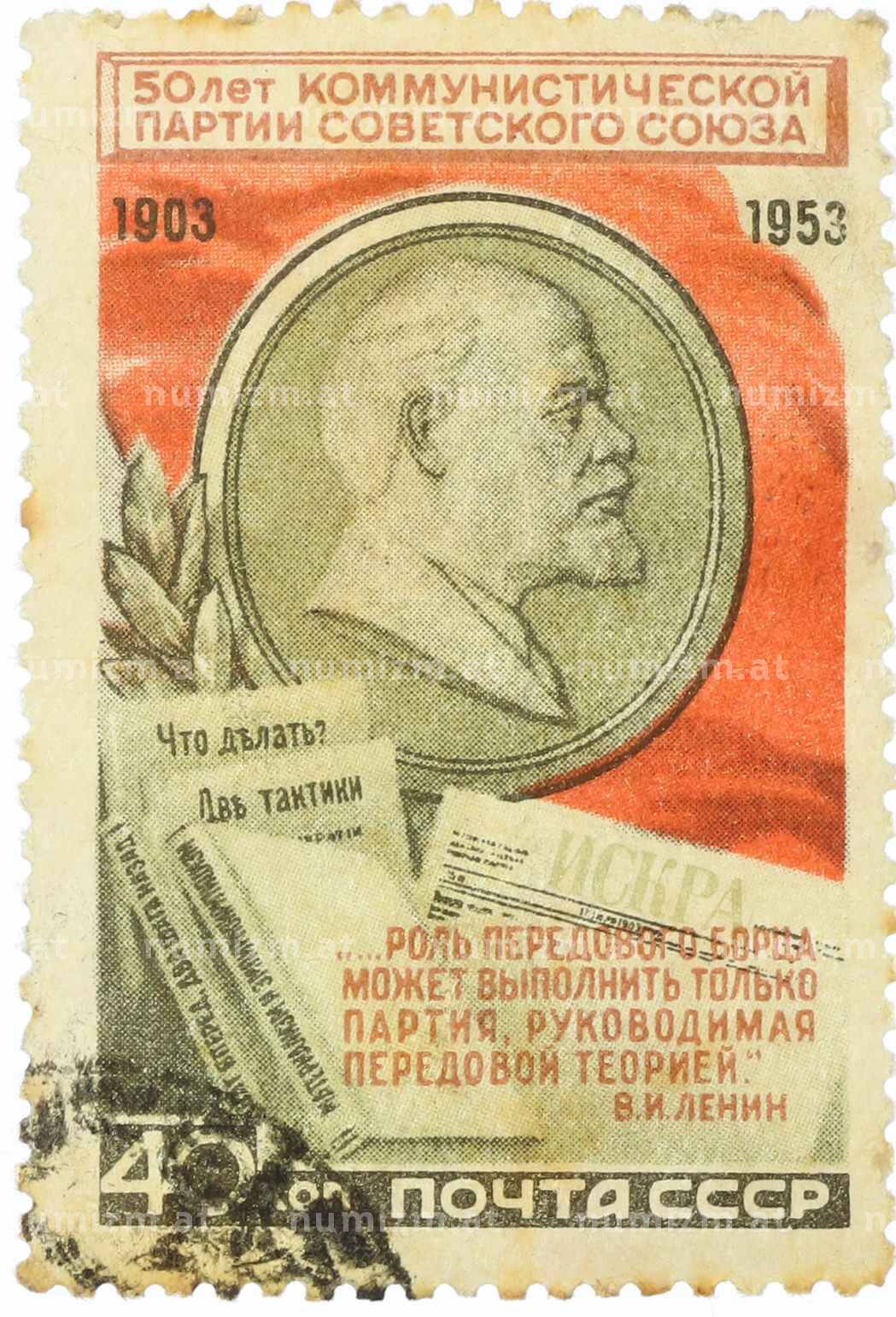 Купить Почтовая марка 40 копеек 1953 года «50 лет КПСС» по привлекательной цене можно в нашем интернет-магазине — Вам достаточно оформить заказ на сайте. Все монеты, представленные в каталоге, находятся в наличии на нашем складе.