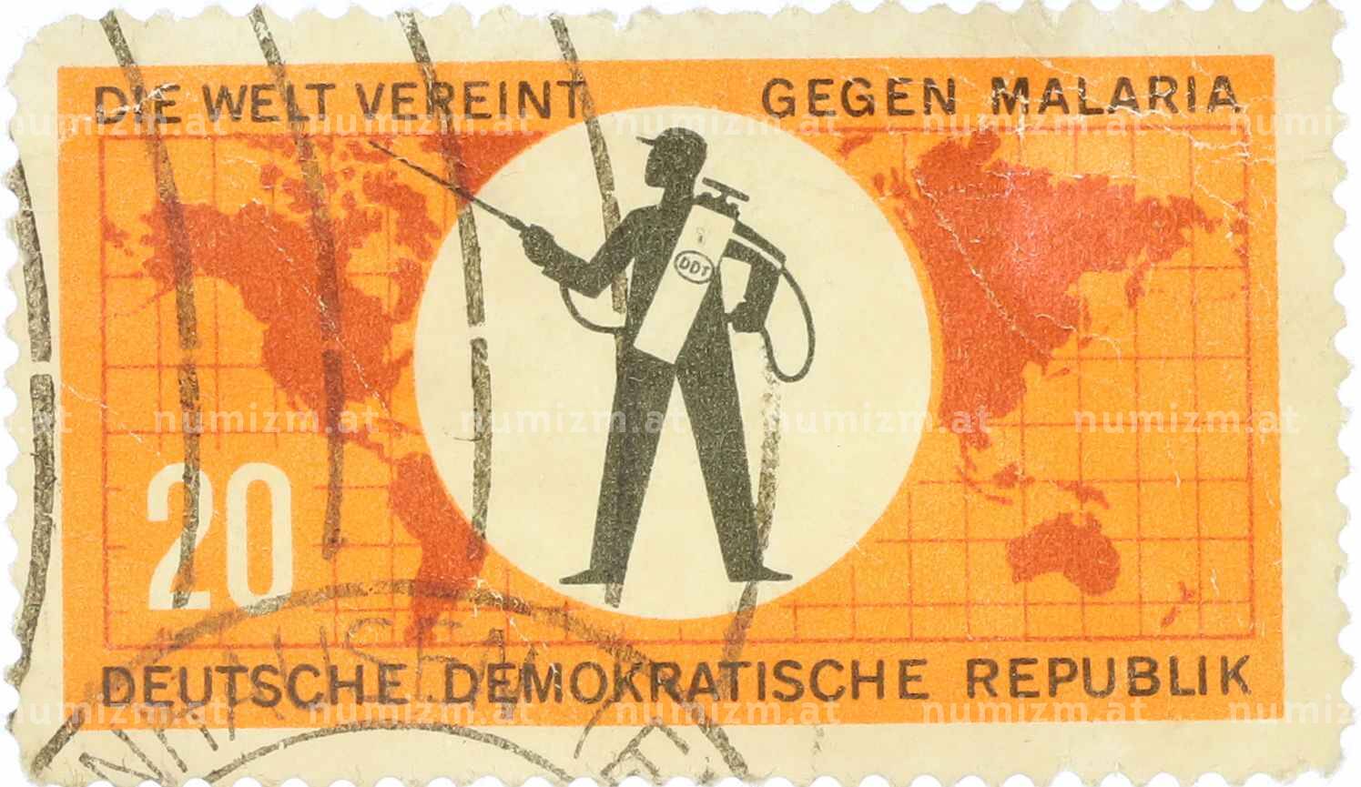 Купить Почтовая марка 20 пфеннигов 1963 года Восточная Германия (ГДР) «Борьба с малярией — Опрыскиватель для борьбы с вредителями» по привлекательной цене можно в нашем интернет-магазине — Вам достаточно оформить заказ на сайте. Все монеты, представленные в каталоге, находятся в наличии на нашем складе.