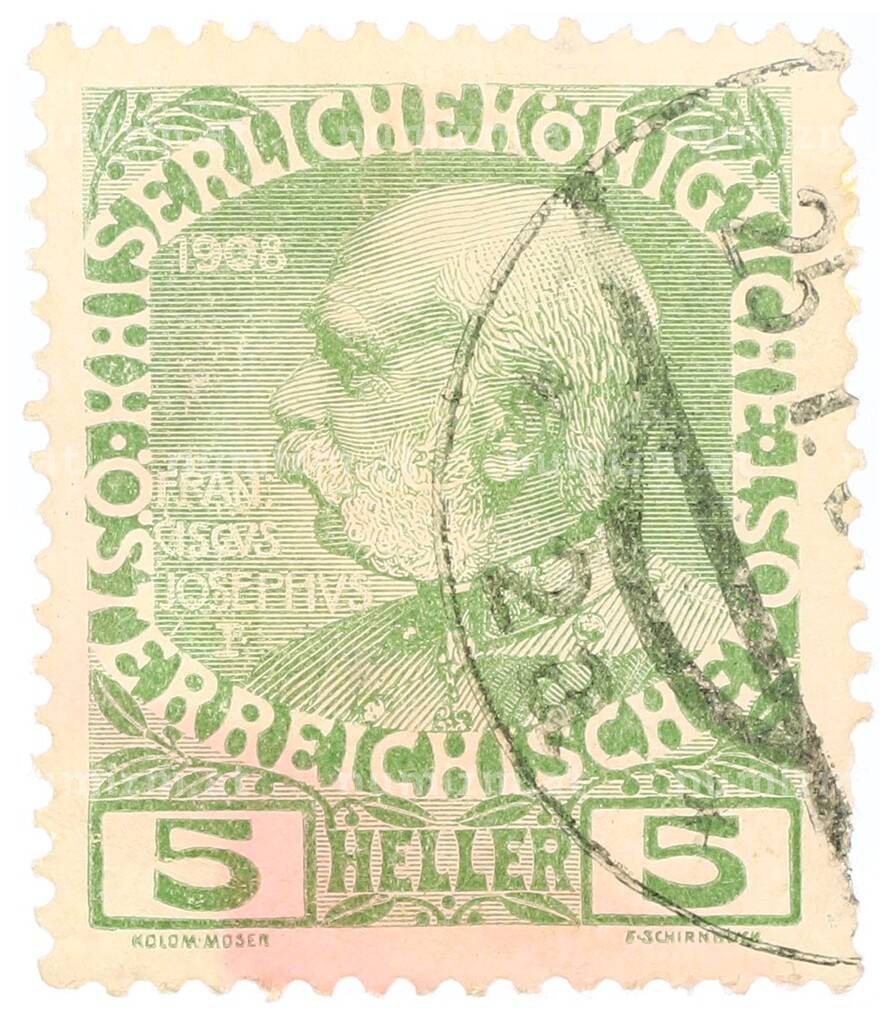 Купить Почтовая марка 5 геллеров 1908 года Австрия «Франц Иосиф I» по привлекательной цене можно в нашем интернет-магазине — Вам достаточно оформить заказ на сайте. Все монеты, представленные в каталоге, находятся в наличии на нашем складе.