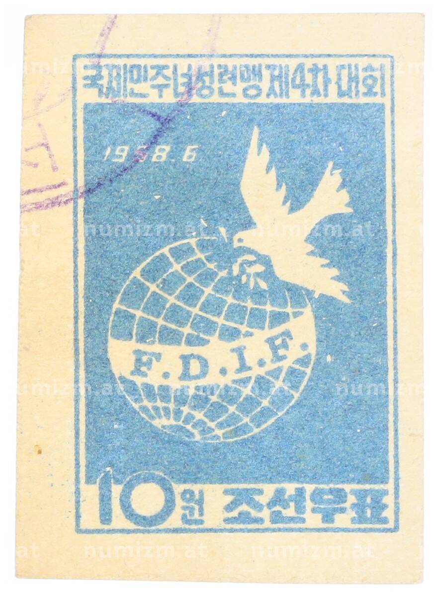 Купить Почтовая марка 10 вон 1958 года Северная Корея «4-й Международный демократический женский конгресс» по привлекательной цене можно в нашем интернет-магазине — Вам достаточно оформить заказ на сайте. Все монеты, представленные в каталоге, находятся в наличии на нашем складе.