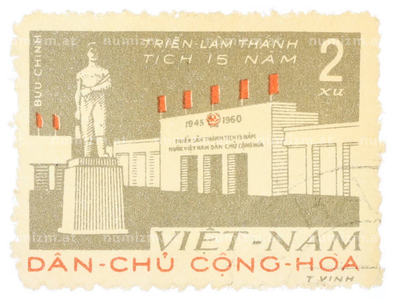 Купить Почтовая марка 2 су 1960 года Северный Вьетнам (ДРВ) «Выставка в честь 15-летия Республики» по привлекательной цене можно в нашем интернет-магазине — Вам достаточно оформить заказ на сайте. Все монеты, представленные в каталоге, находятся в наличии на нашем складе.