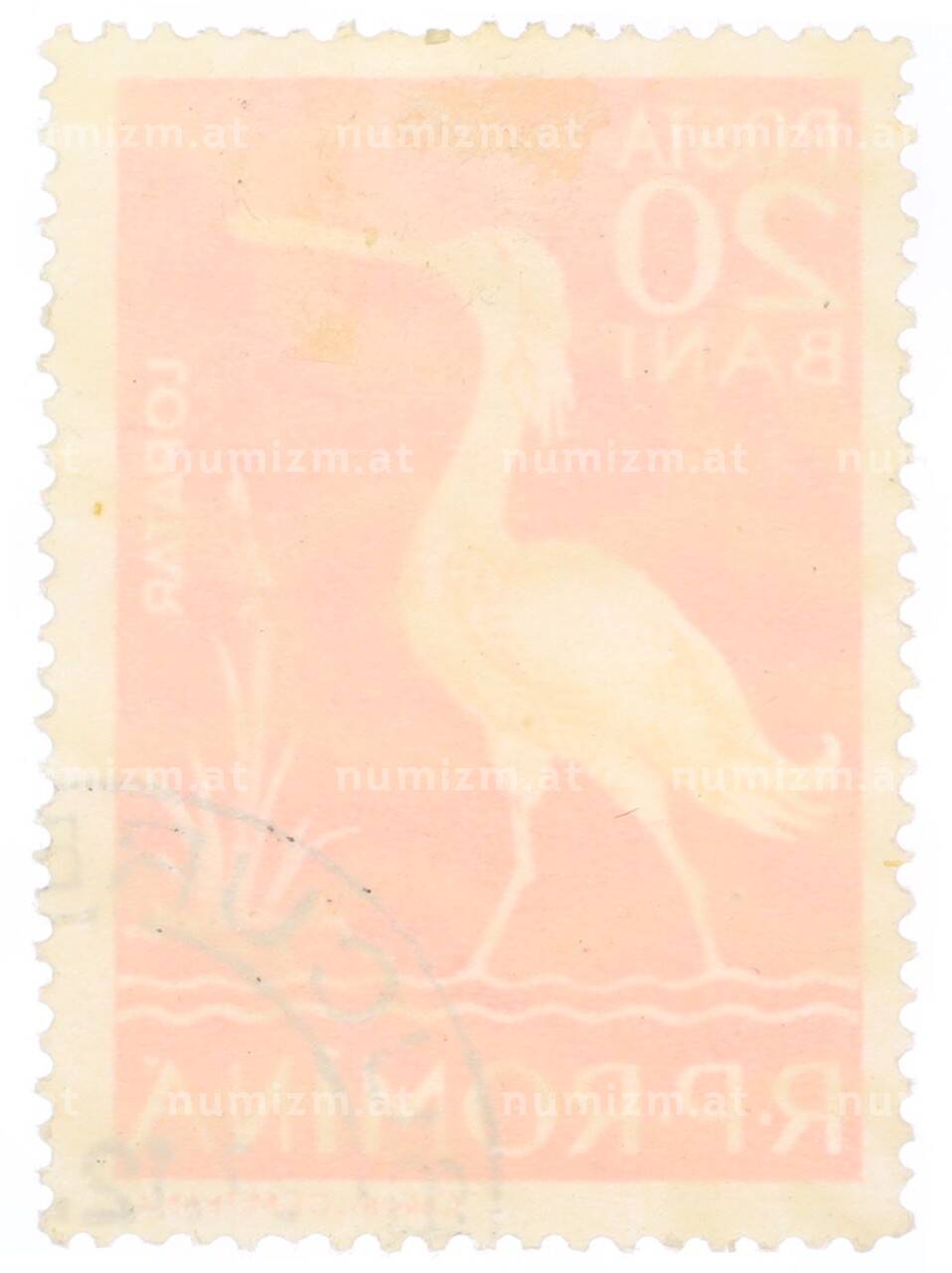 20.01.2025Интернет магазин «Нумизмат» предлагает приобрести Почтовая марка 20 бани 1957 года Румыния «Евразийская колпица (Platalea leucorodia)».
