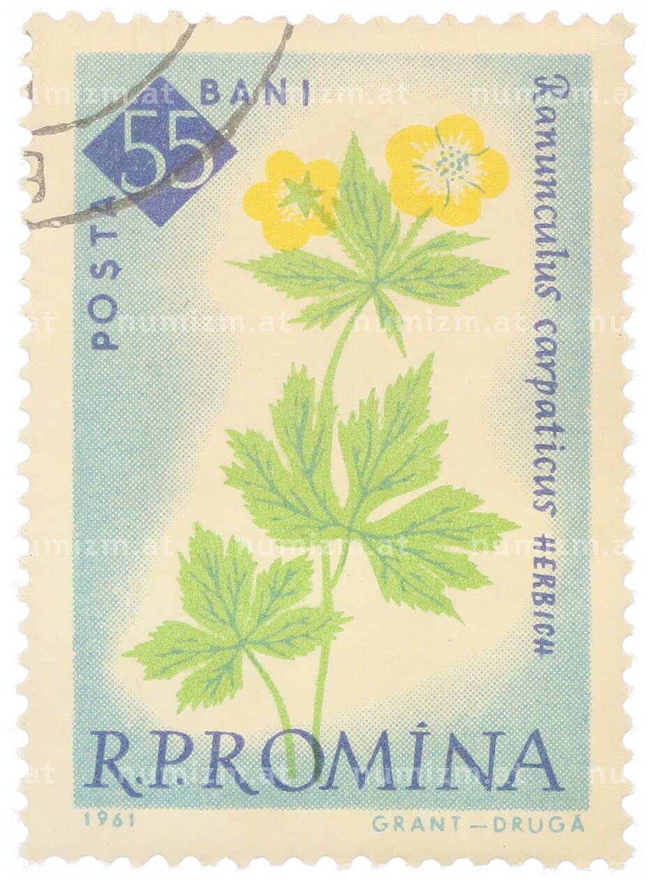 Купить Почтовая марка 55 бани 1959 года Румыния «Столетие ботанического сада Бухареста — Карпатский лютик (Ranunculus carpathicus)» по привлекательной цене можно в нашем интернет-магазине — Вам достаточно оформить заказ на сайте. Все монеты, представленные в каталоге, находятся в наличии на нашем складе.