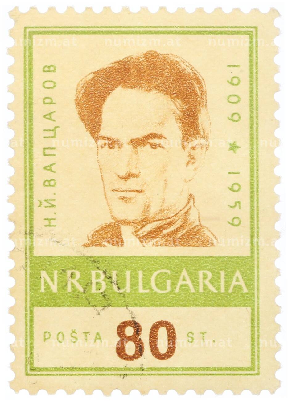 Купить Почтовая марка 80 стотинок 1959 года Болгария «50-летие со дня рождения Николы Вапцарова» по привлекательной цене можно в нашем интернет-магазине — Вам достаточно оформить заказ на сайте. Все монеты, представленные в каталоге, находятся в наличии на нашем складе.