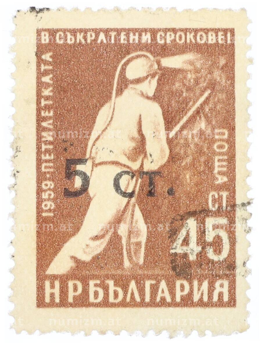 Купить Почтовая марка 5 стотинок 1962 года Болгария «Пятилетний план в более сжатые сроки — Шахтер» (Надпечатка на 45 стотинках) по привлекательной цене можно в нашем интернет-магазине — Вам достаточно оформить заказ на сайте. Все монеты, представленные в каталоге, находятся в наличии на нашем складе.