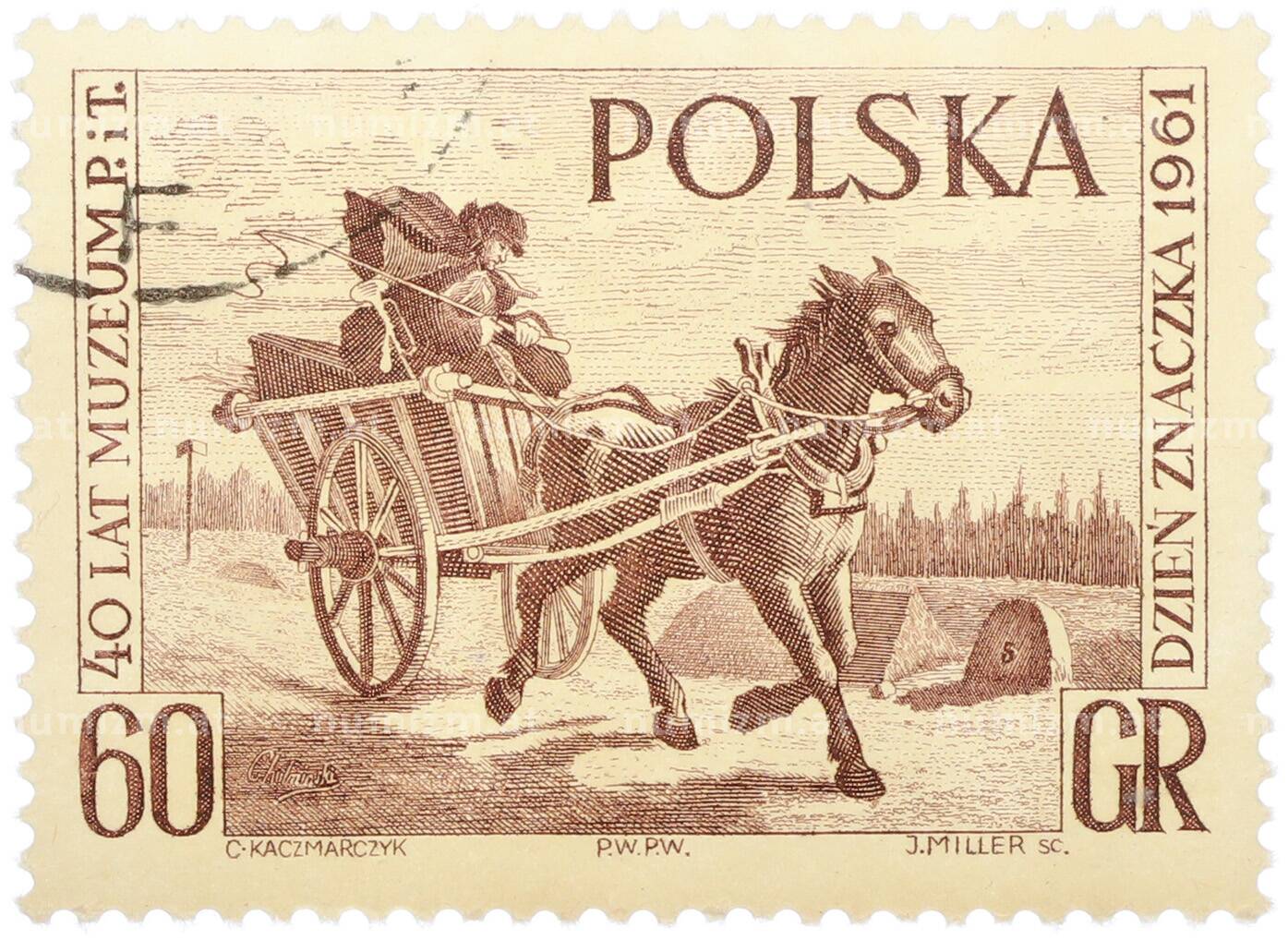 Почтовая марка 60 грошей 1961 года Польша «40-летие Музея почты и телекоммуникаций» (Артикул: P2-1132): подробные характеристики, качественные фотографии в высоком разрешении, низкая цена.