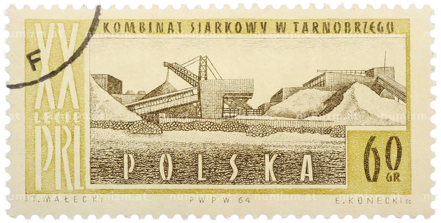Купить Почтовая марка 60 грошей 1964 года Польша «20-летие Польской Народной Республики -Cерный комбинат в Тарнобжеге» по привлекательной цене можно в нашем интернет-магазине — Вам достаточно оформить заказ на сайте. Все монеты, представленные в каталоге, находятся в наличии на нашем складе.