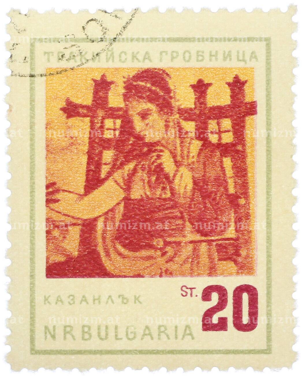 20.01.2025Интернет магазин «Нумизмат» предлагает приобрести Почтовая марка 20 стотинок 1963 года Болгария «Фракийская гробница в Казанлыке».