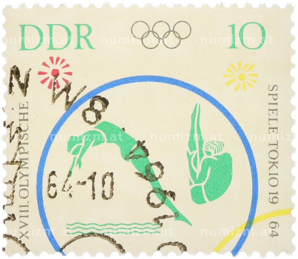 Купить Почтовая марка 10 пфеннигов 1964 года Восточная Германия (ГДР) «XVIII Олимпийские игры 1964 в Токио — Прыжки в воду» по привлекательной цене можно в нашем интернет-магазине — Вам достаточно оформить заказ на сайте. Все монеты, представленные в каталоге, находятся в наличии на нашем складе.