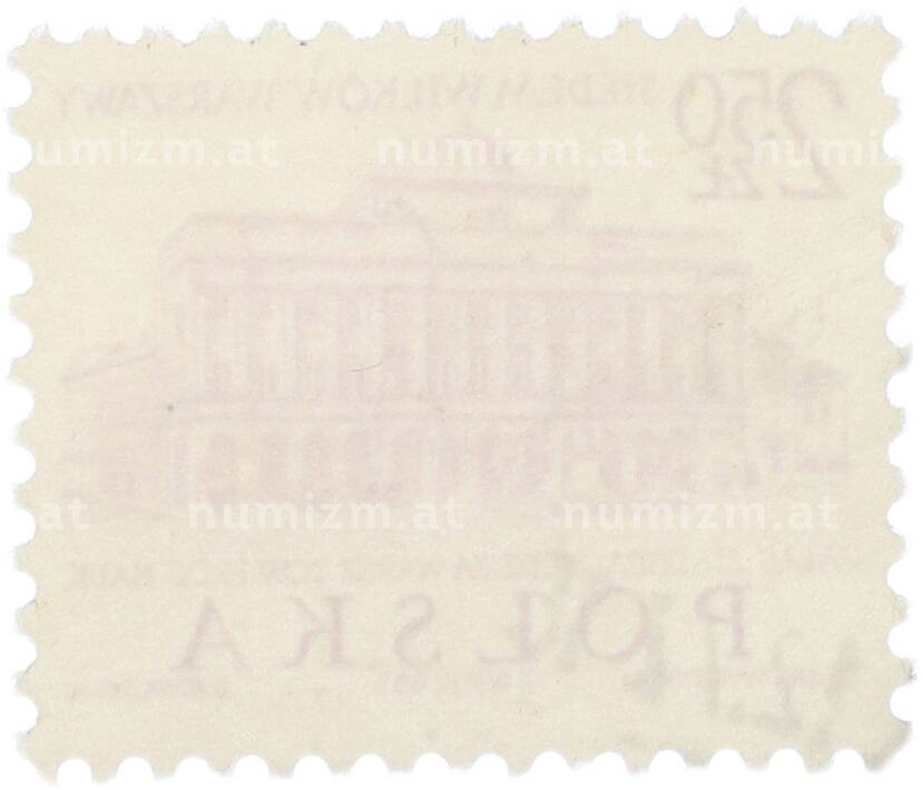 20.01.2025Интернет магазин «Нумизмат» предлагает приобрести Почтовая марка 2.50 злотых 1965 года Польша «Архитектура — Дворец Сташица».