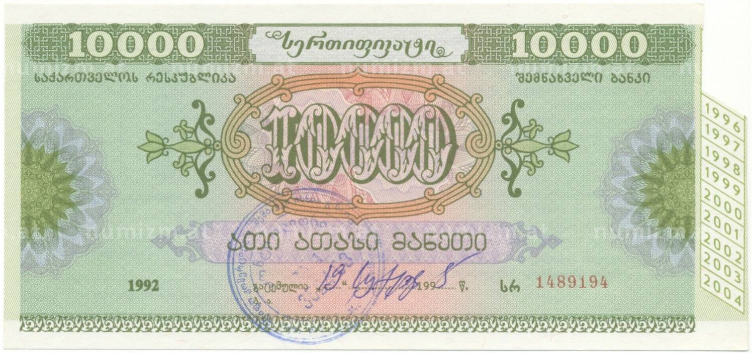 Купить Сберегательный сертификат 10000 рублей 1992 года Грузия по привлекательной цене можно в нашем интернет-магазине — Вам достаточно оформить заказ на сайте. Все монеты, представленные в каталоге, находятся в наличии на нашем складе.