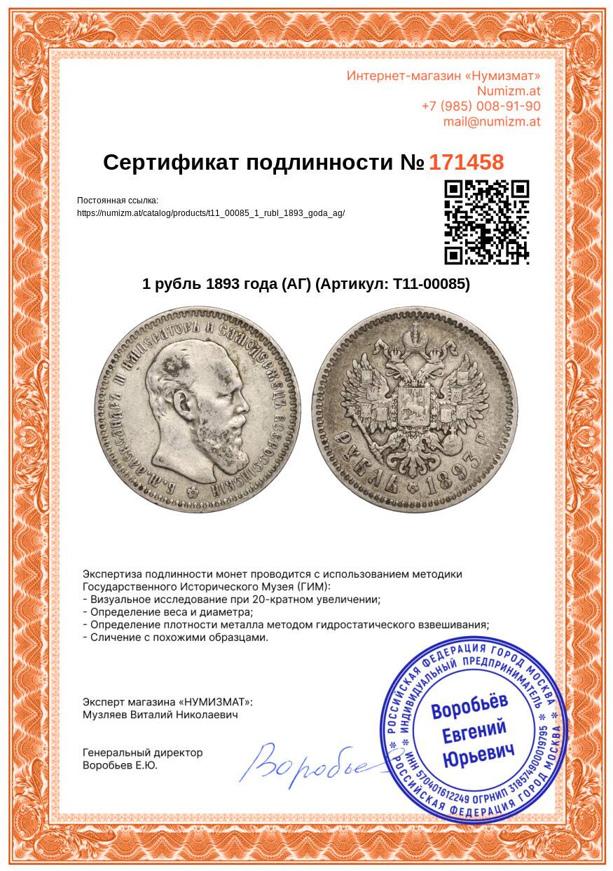 Купить 1 рубль 1893 года (АГ) по привлекательной цене можно в нашем интернет-магазине — Вам достаточно оформить заказ на сайте. Все монеты, представленные в каталоге, находятся в наличии на нашем складе.