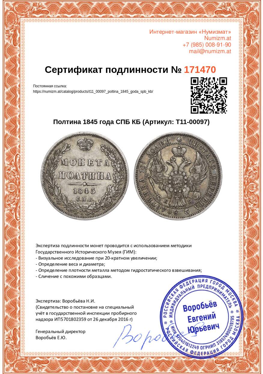 Купить Полтина 1845 года СПБ КБ по привлекательной цене можно в нашем интернет-магазине — Вам достаточно оформить заказ на сайте. Все монеты, представленные в каталоге, находятся в наличии на нашем складе.
