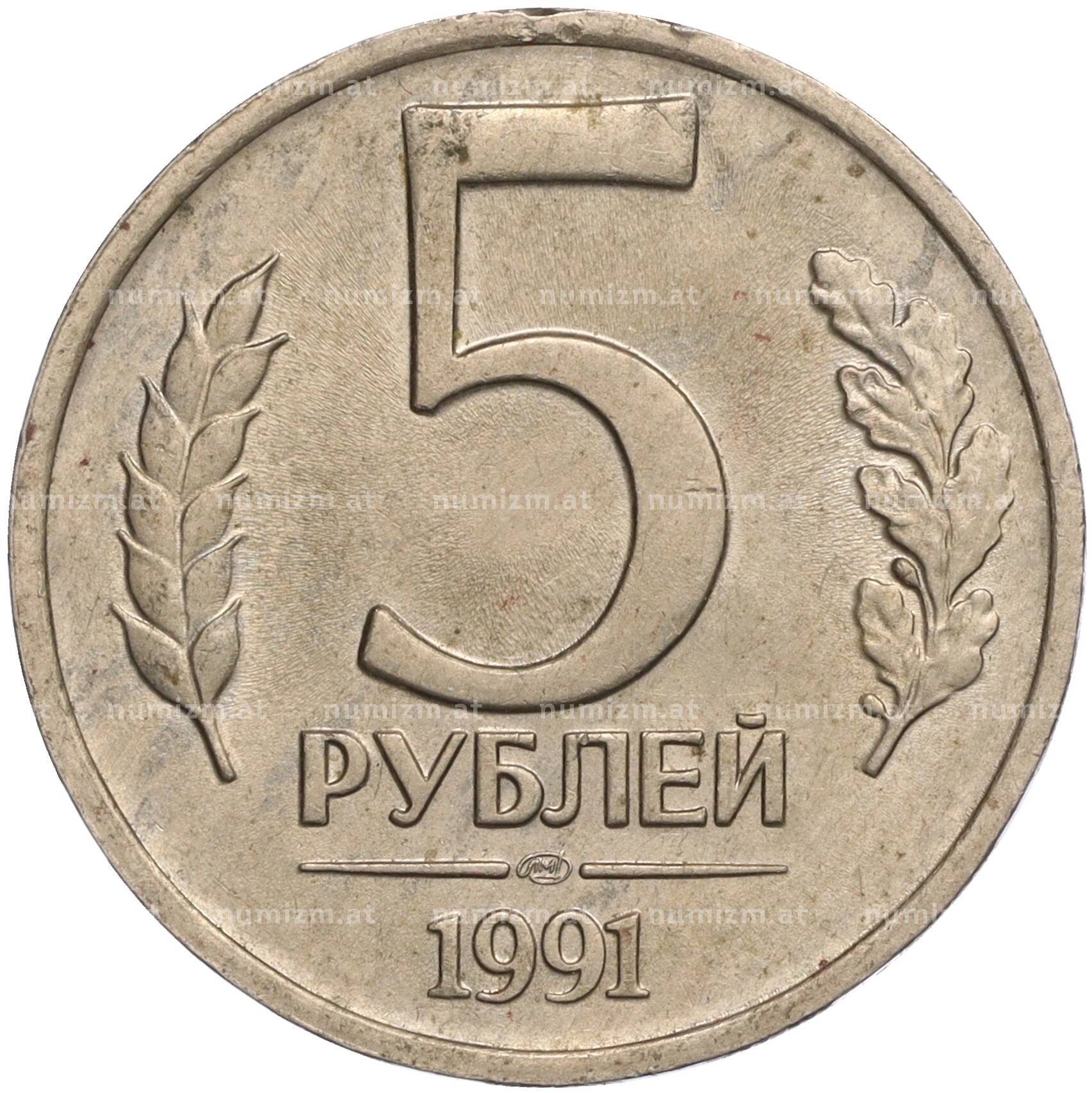 Интернет магазин «Нумизмат» предлагает приобрести 5 рублей 1991 года ЛМД (ГКЧП).