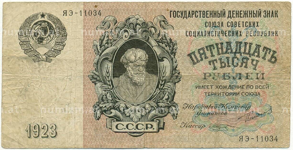 20.01.2025Интернет магазин «Нумизмат» предлагает приобрести 15000 рублей 1923 года.