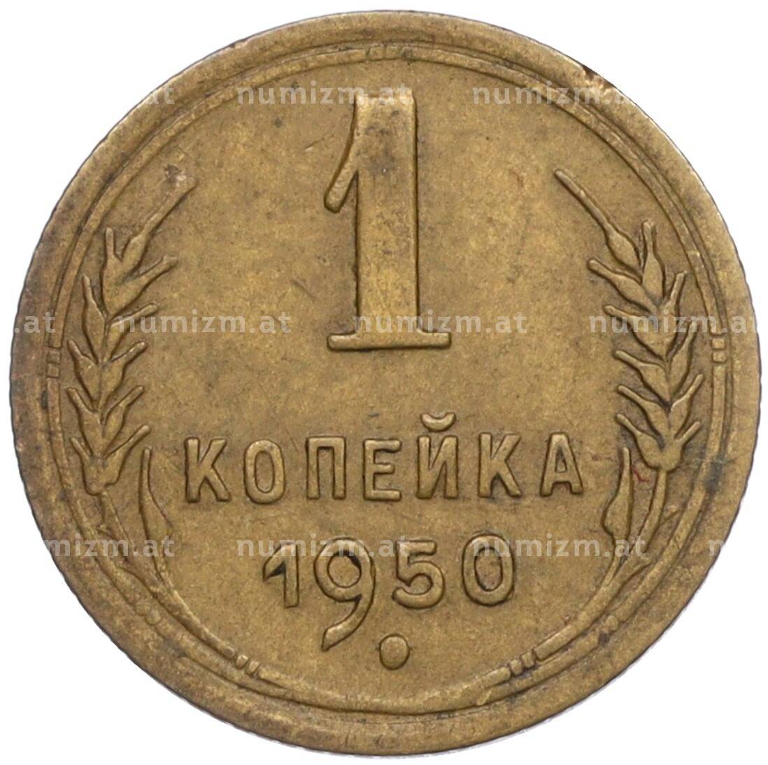 Купить 1 копейка 1950 года по привлекательной цене можно в нашем интернет-магазине — Вам достаточно оформить заказ на сайте. Все монеты, представленные в каталоге, находятся в наличии на нашем складе.