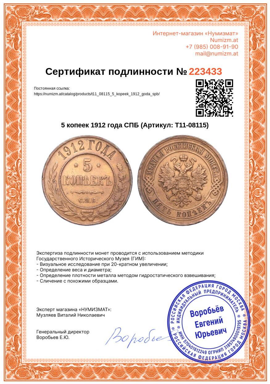Купить 5 копеек 1912 года СПБ по привлекательной цене можно в нашем интернет-магазине — Вам достаточно оформить заказ на сайте. Все монеты, представленные в каталоге, находятся в наличии на нашем складе.