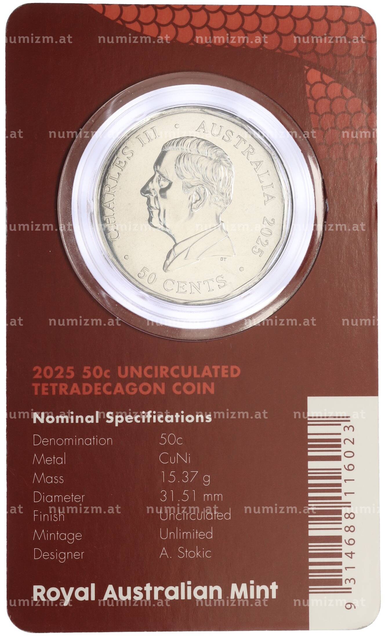 20.01.2025Интернет магазин «Нумизмат» предлагает приобрести 50 центов 2025 года Австралия «Китайский гороскоп — Год Змеи».