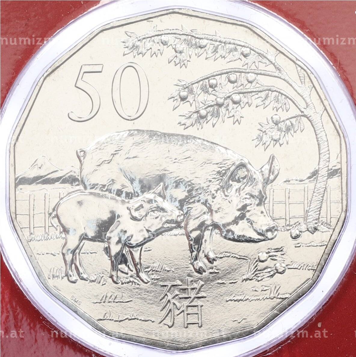 Купить 50 центов 2019 года Австралия «Китайский гороскоп — Год свиньи» (в буклете) по привлекательной цене можно в нашем интернет-магазине — Вам достаточно оформить заказ на сайте. Все монеты, представленные в каталоге, находятся в наличии на нашем складе.