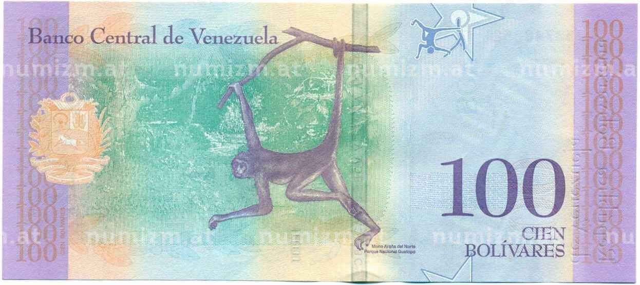 Банкнота 100 боливаров 2018 года Венесуэла (Артикул: T11-16915): подробные характеристики, качественные фотографии в высоком разрешении, низкая цена.