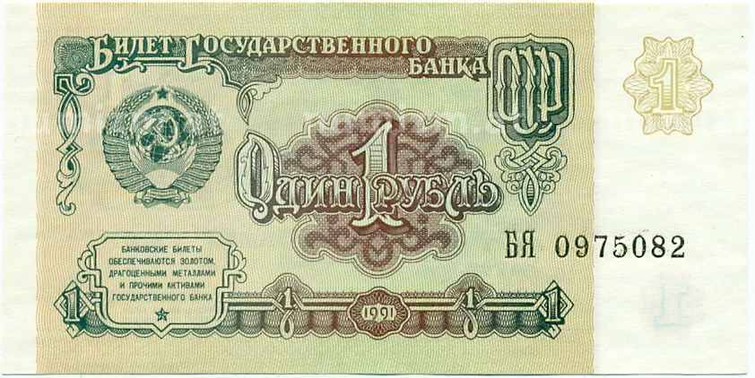 • Банкнота 1 рубль 1991 года (Артикул: T11-18375) — Фото №1 Банкнота 1 рубль 1991 года (Артикул: T11-18375) — Фото №2