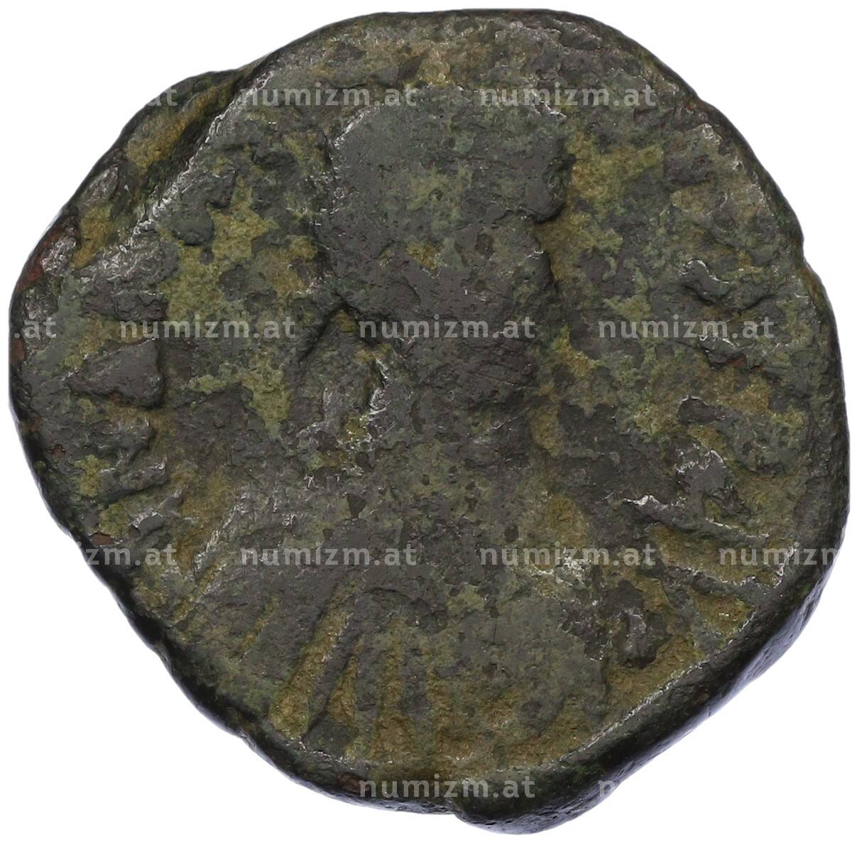 Купить Фоллис 527-538 года Византия — Юстиниан I по привлекательной цене можно в нашем интернет-магазине — Вам достаточно оформить заказ на сайте. Все монеты, представленные в каталоге, находятся в наличии на нашем складе.
