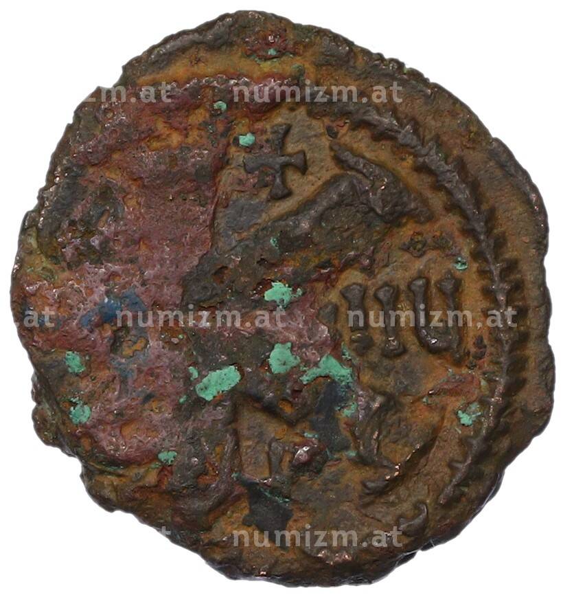 Купить 1/2 фоллиса 565-578 года Византия — Юстиниан II и София по привлекательной цене можно в нашем интернет-магазине — Вам достаточно оформить заказ на сайте. Все монеты, представленные в каталоге, находятся в наличии на нашем складе.