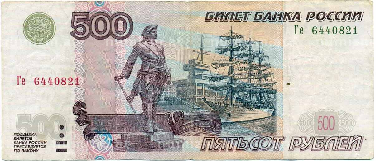 Банкнота 500 рублей 1997 года (Модификация 2004 года) (Артикул: T11-20599): подробные характеристики, качественные фотографии в высоком разрешении, низкая цена.