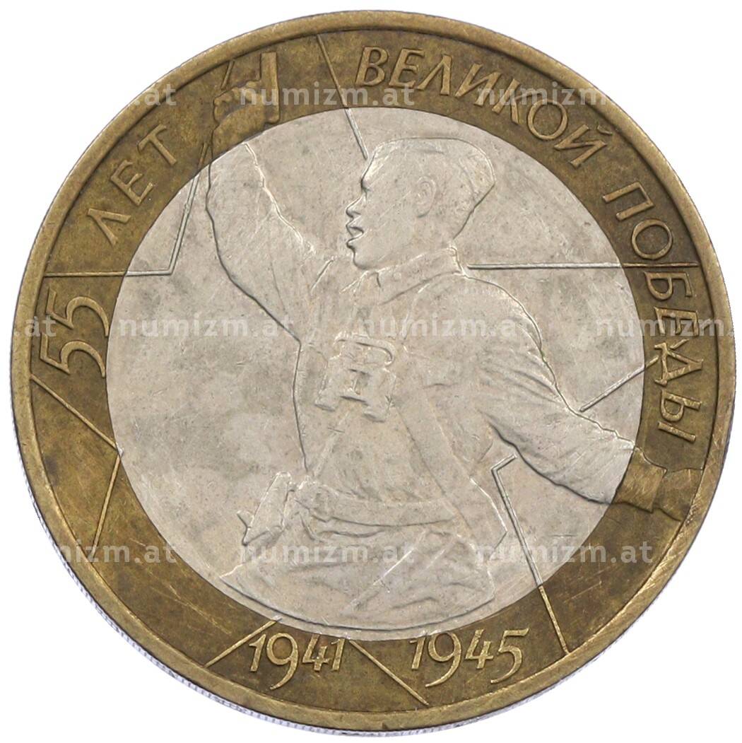 Монета 10 рублей 2000 года ММД «55 лет Победы» (Артикул: T11-20659): подробные характеристики, качественные фотографии в высоком разрешении, низкая цена.