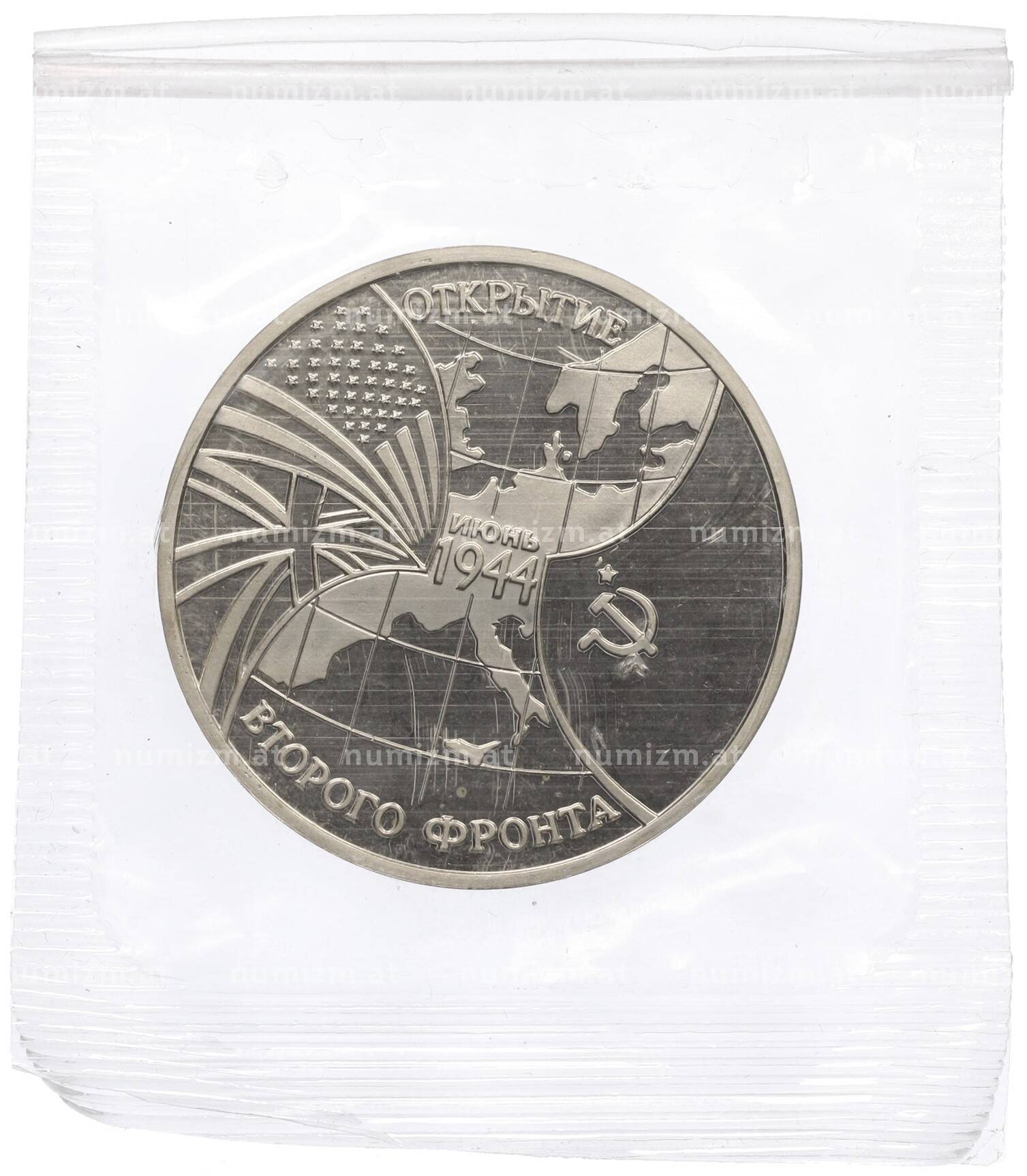 Интернет магазин «Нумизмат» предлагает приобрести 3 рубля 1994 года ММД «Открытие второго фронта».
