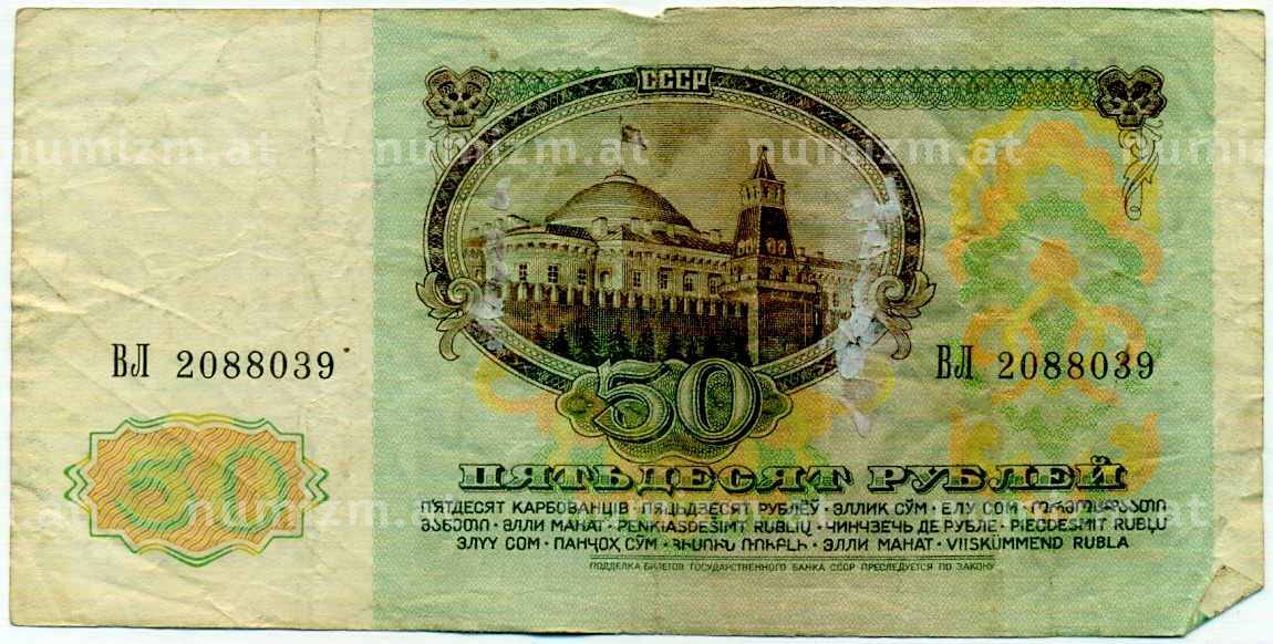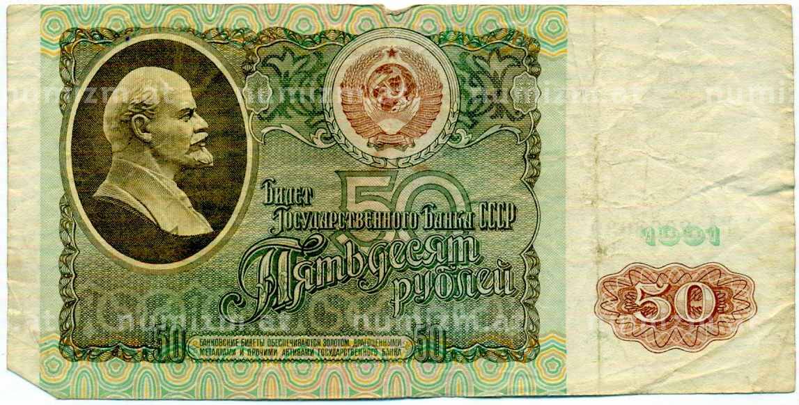 • Банкнота 50 рублей 1991 года (Артикул: T11-21273) — Фото №1 Банкнота 50 рублей 1991 года (Артикул: T11-21273) — Фото №2