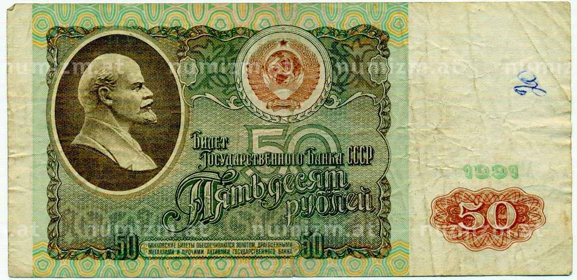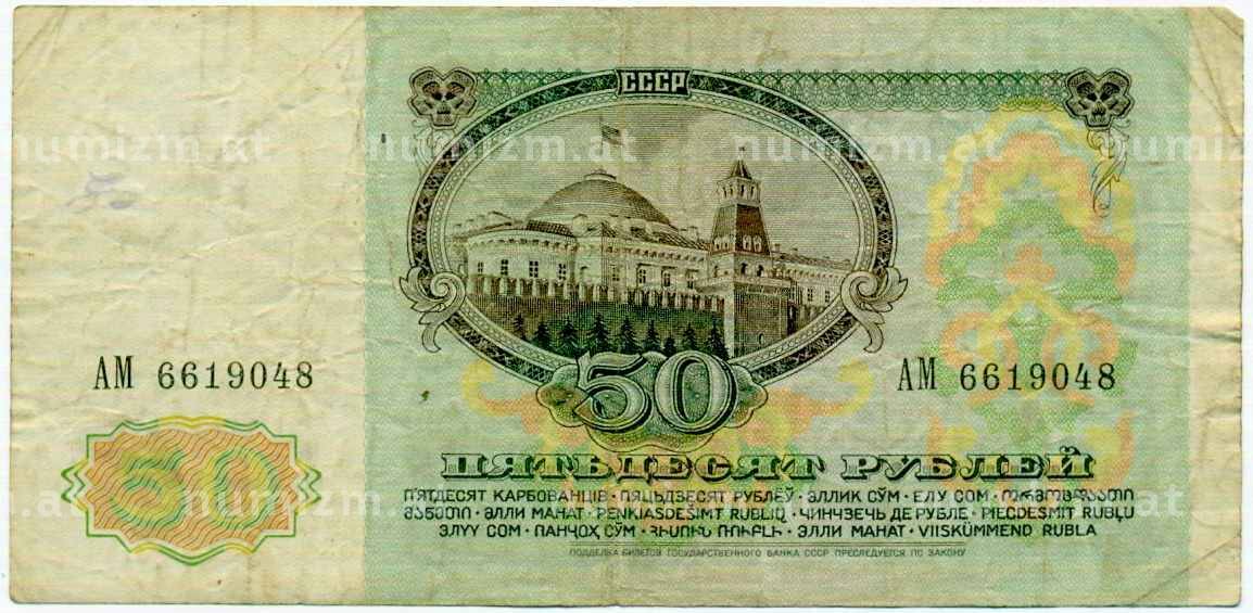 • Банкнота 50 рублей 1991 года (Артикул: T11-21275) — Фото №1 Банкнота 50 рублей 1991 года (Артикул: T11-21275) — Фото №2