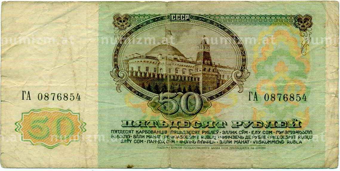 • Банкнота 50 рублей 1991 года (Артикул: T11-21277) — Фото №1 Банкнота 50 рублей 1991 года (Артикул: T11-21277) — Фото №2