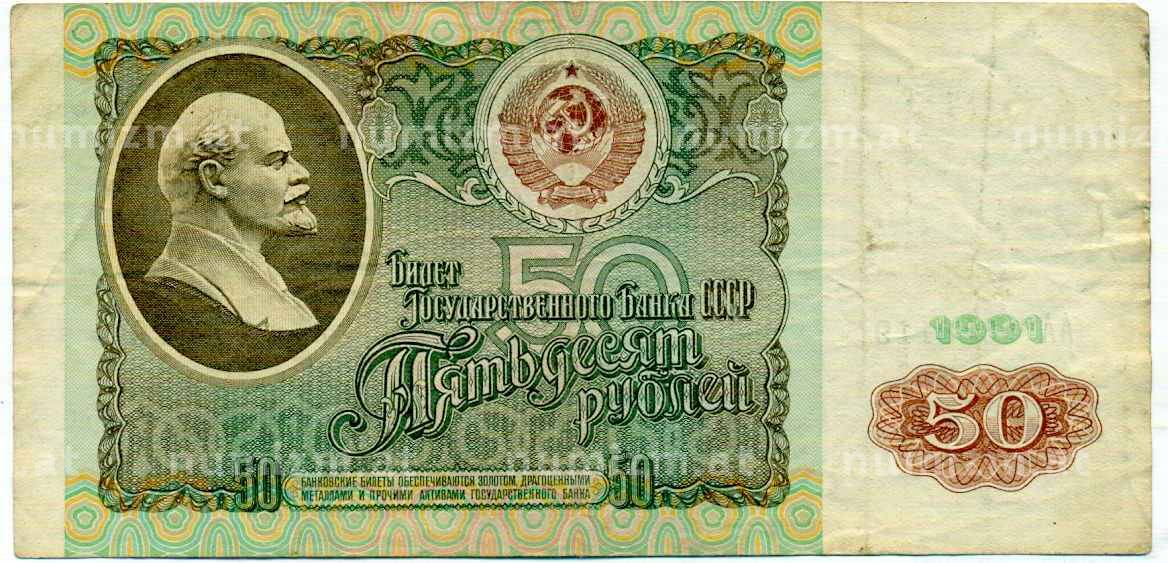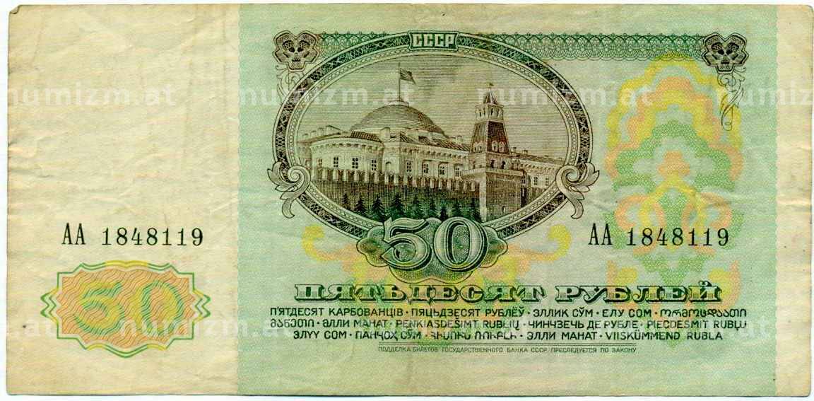 • Банкнота 50 рублей 1991 года (Артикул: T11-21282) — Фото №1 Банкнота 50 рублей 1991 года (Артикул: T11-21282) — Фото №2