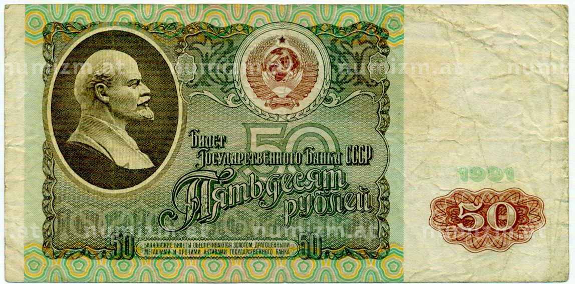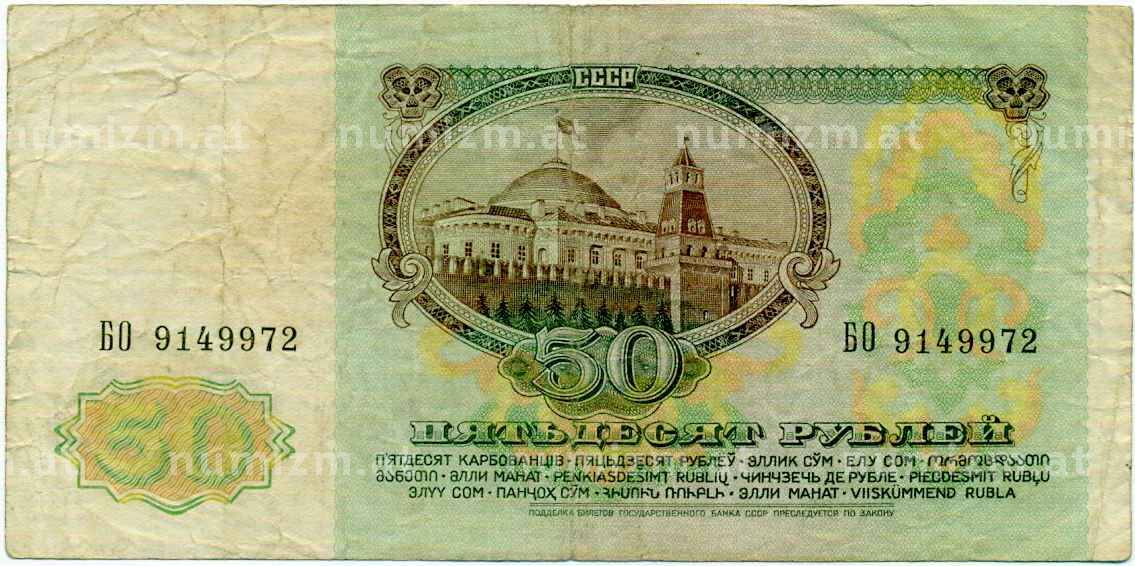 • Банкнота 50 рублей 1991 года (Артикул: T11-21287) — Фото №1 Банкнота 50 рублей 1991 года (Артикул: T11-21287) — Фото №2