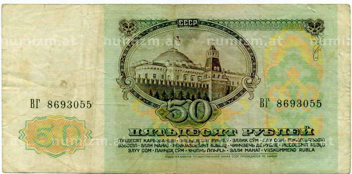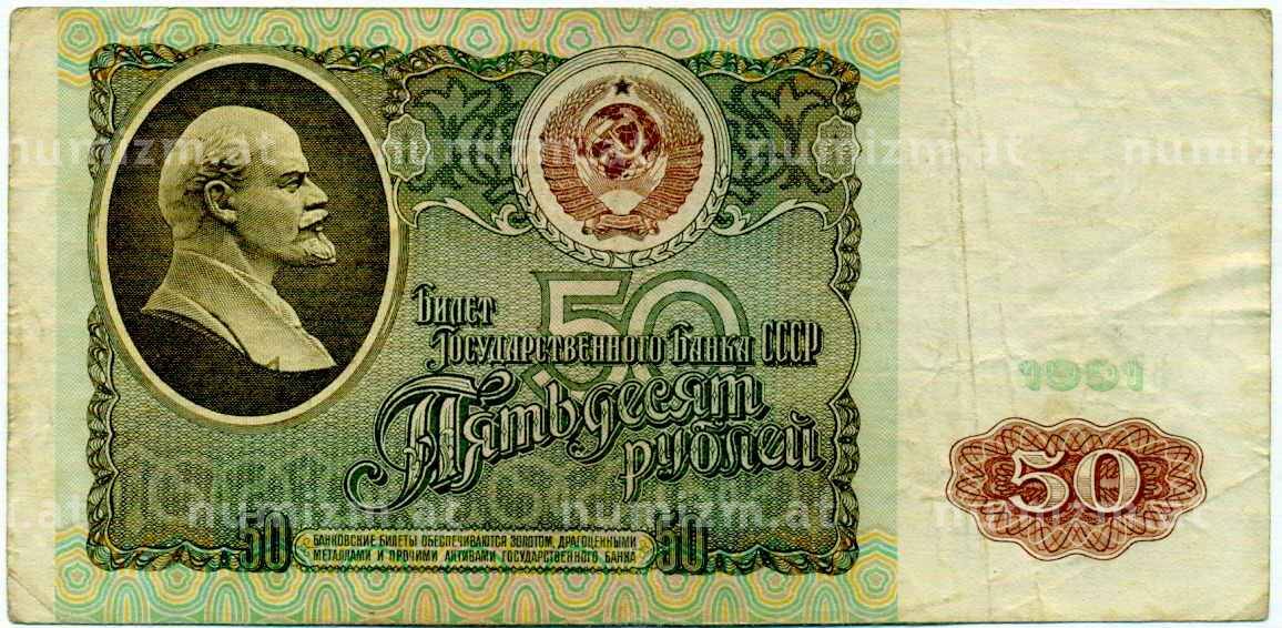 • Банкнота 50 рублей 1991 года (Артикул: T11-21288) — Фото №1 Банкнота 50 рублей 1991 года (Артикул: T11-21288) — Фото №2