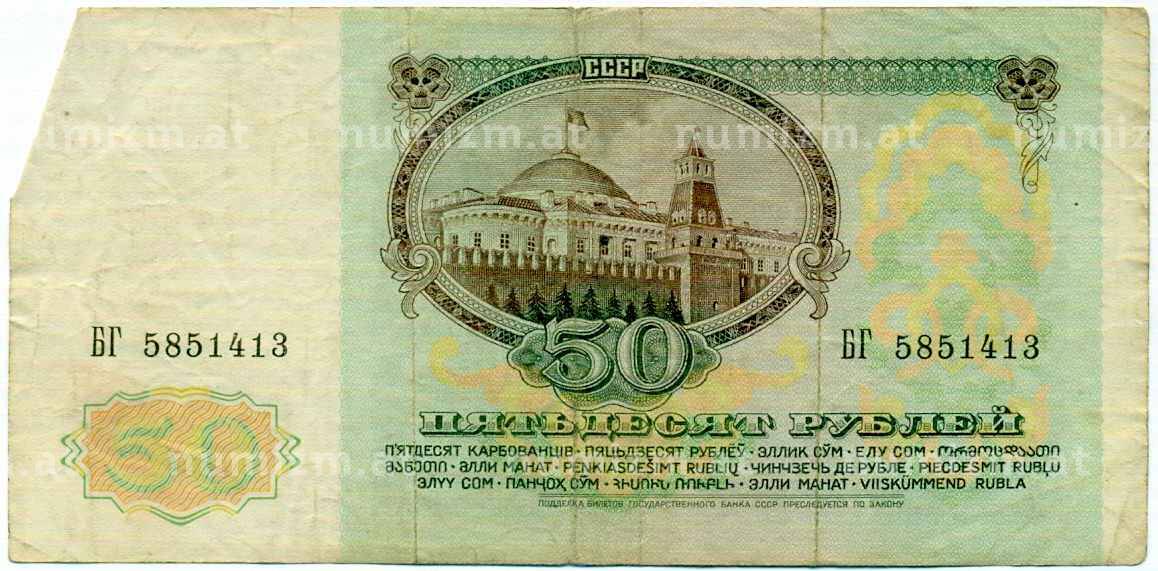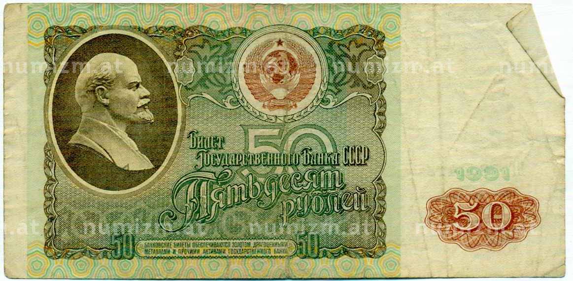 • Банкнота 50 рублей 1991 года (Артикул: T11-21291) — Фото №1 Банкнота 50 рублей 1991 года (Артикул: T11-21291) — Фото №2