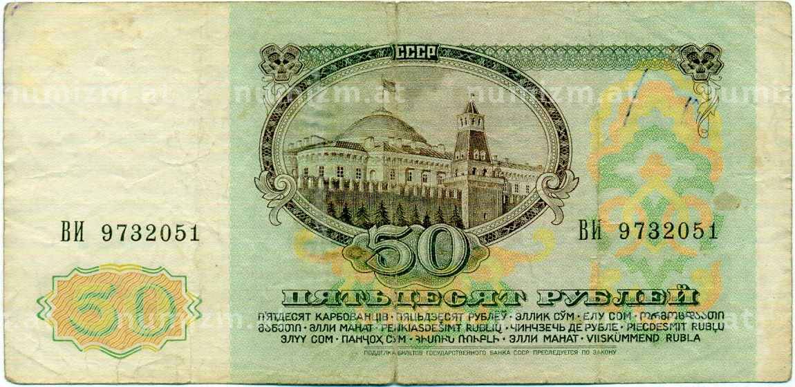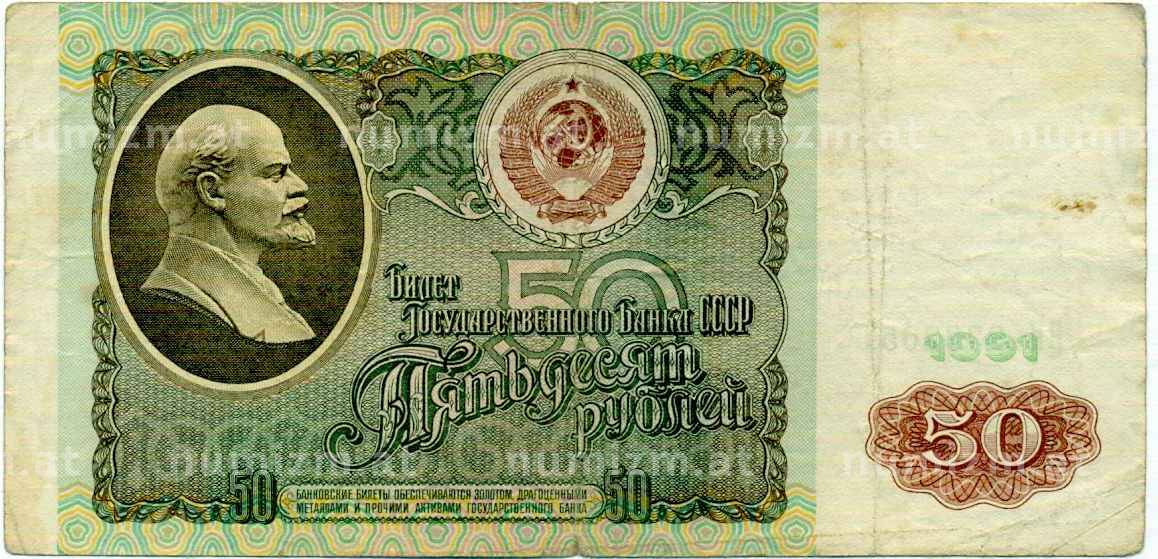 • Банкнота 50 рублей 1991 года (Артикул: T11-21294) — Фото №1 Банкнота 50 рублей 1991 года (Артикул: T11-21294) — Фото №2