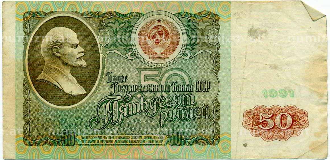 • Банкнота 50 рублей 1991 года (Артикул: T11-21296) — Фото №1 Банкнота 50 рублей 1991 года (Артикул: T11-21296) — Фото №2