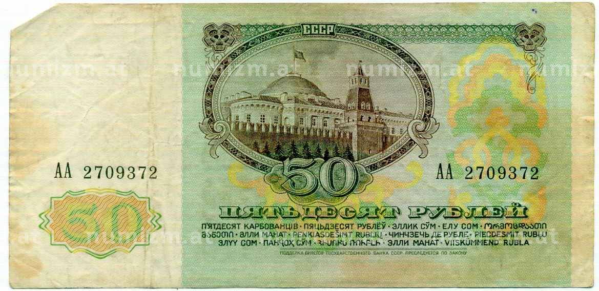 Банкнота 50 рублей 1991 года (Артикул: T11-21296): подробные характеристики, качественные фотографии в высоком разрешении, низкая цена.
